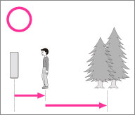 イラストのように被写体に近づき、被写体と背景の距離は大きくとってください。暗すぎるシーンや動きのある被写体を撮影した場合、またAE/AFロック後にカメラを動かした場合は、3D効果がはっきり出ない場合があります。また、暗い場所で撮影した場合、ノイズが強調されることがあります。