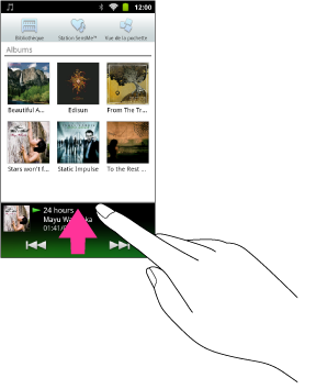 Tapez sur la pochette affichée sur le mini lecteur pour afficher l'écran de lecture de la musique.