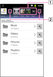 De mappar som valts för att nå den aktuella mappen listas i ordning under serverlistan. Du kan återgå till föregående mappar genom att trycka på objekt i listan.