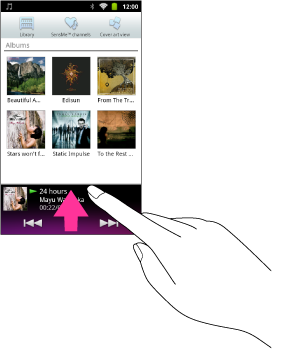 انقر غلاف الالبوم المعروض على المشغل الصغير لعرض شاشة تشغيل الموسيقى.