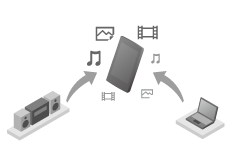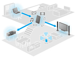 يمكن أن تعرض محتويات مثل صور أو موسيقى أو افلام فيديو مخزنة على خادم DLNA مصادق عليه (كمبيوتر، الخ) على جهاز "WALKMAN" من خلال التوصيل إلى ذلك الخادم.