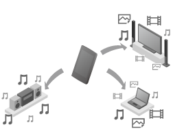 يمكن ايضاً ارسال المحتويات المخزنة في خادم على الشبكة المنزلية إلى جهاز آخر (جهاز عرض) وعرضها عليه.