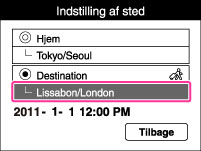 Du anvender kameraet indstillet til klokkeslættet på din destination. Indstil destinationsområdet.