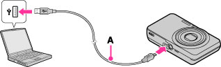 Fotoğraf makinesini özel USB kablosunu (ürünle verilir) (A) kullanarak bilgisayarınıza bağlayın.