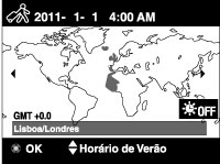 Você usa a câmera para definir a hora em seu destino. Ajuste a região de destino.