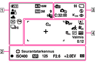 Kuvakkeita näytetään näytössä kameran tilan osoittamiseksi.