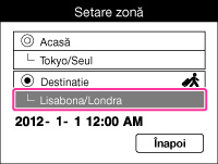Folosiţi aparatul foto setat după ora destinaţiei dvs. Setaţi zona de destinaţie.