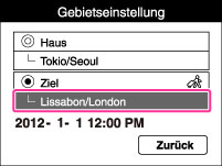 Die Kamera wird auf die Uhrzeit an Ihrem Ziel eingestellt. Stellen Sie das Zielgebiet ein.