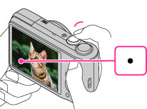 Kun kamera ei pysty tarkentamaan kohteeseen automaattisesti, AE/AF-lukon ilmaisin alkaa vilkkua hitaasti eikä äänimerkkiä kuulu. Sommittele kuva uudelleen tai muuta tarkennusasetusta. [Tietoja]