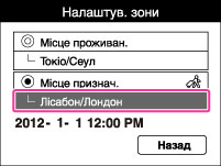 Фотоапарат відображає час вашого місця призначення. Установіть місце призначення.