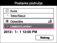 Fotoaparat koristite podešen na vrijeme odredišta. Podesite odredišno područje.