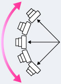 スイングパノラマ撮影のポイント一定の速度で小さな円を描くように動かし、モニターの矢印方向と平行に動かしてください。動いている被写体よりも、止まっている被写体のほうがパノラマ撮影には適しています。