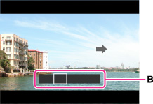 モニター上の矢印方向に、カメラをガイド(B)の終端まで動かす