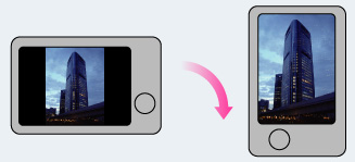 Visione delle immagini verticali sul display a schermo completo (solo DSC-HX10V)Se la fotocamera è ruotata, l’orientamento orizzontale o verticale dell’immagine è determinato e l’immagine in corso di riproduzione viene ruotata automaticamente.