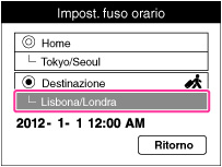 Imposta il fuso orario in cui si sta usando questa fotocamera.