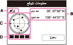 كاميرتك تستقبل إشارة GPS، ويمكن أن تحصل على معلومات الموقع. یعرض خط الطول وخط العرض (B) عند عملیة تثلیث.