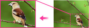 ![]() أدر الذراع W/T (زوم) إلى الجانب T ( ) للتقريب، والجانب W للتبعيد. اضبط نقطة الزوم باستخدام / / / على عجلة التحكم. MENU اختر حجم صورة لحفظه ![]() [OK] ![]()
