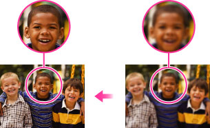 ![]() اختر منطقة (إطار) الصورة المرغوبة لإعادة لمسها باستخدام / / / على عجلة التحكم MENU. [OK] ![]()