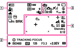(Visningsindstilling) på kontrolhjulet.Liste over ikoner for optagetilstande