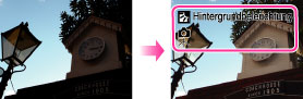 Wenn die Kamera die Szene erkennt, wählt sie die optimalen Einstellungen. Wenn die Kamera (Nachtszene), (Nachtaufnahme), (Hintergrundbeleuchtung) oder (Hintergrundbel.-Porträt) erkennt, ändert sie automatisch die Einstellungen und nimmt ein weiteres Bild auf.