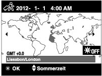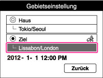Die Kamera wird auf die Uhrzeit an Ihrem Ziel eingestellt. Stellen Sie das Zielgebiet ein.
