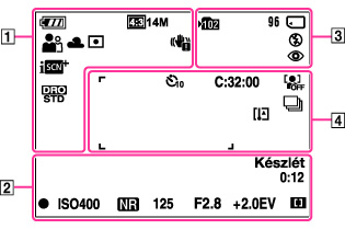 Az ikonok azért vannak megjelenítve a képernyőn, hogy a fényképezőgép állapotát jelezzék.