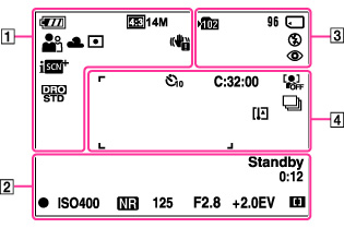 Optagetilstand (Intelligent Auto, Auto programmeret, SteadyShot, Panorering, Filmtilstand)
