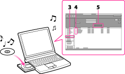 x-アプリでは、曲をインターネット音楽配信サービスからパソコンに取り込んだり、すでにパソコンに保存している曲(MP3、WMA (*1)、ATRAC、AAC (*1)など)をx-アプリで取り込んで管理できます。