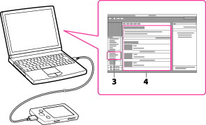 同梱のUSBケーブルで“ウォークマン”とパソコンを接続する。