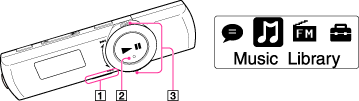 U kunt het Home-menu weergeven door de BACK/HOME-knop op de Walkman ingedrukt te houden.