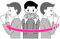 Determinare la scena e premere parzialmente il pulsante di scatto, in modo che sia possibile bloccare la messa a fuoco, l’esposizione e il bilanciamento del bianco. Quindi premere completamente il pulsante di scatto ed eseguire la panoramica con la fotocamera.