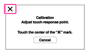 Ak sa nedotknete správneho bodu, kalibrácia sa nevykoná. Znovu sa dotknite stredu značky ×.