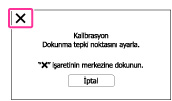 Doğru noktaya dokunmazsanız kalibrasyon gerçekleşmez. × işaretinin merkezine tekrar dokunun.