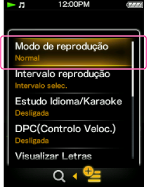 A partir do ecrã de reprodução de música, carregue no botão OPTION/PWR OFF.