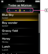 Os seguintes exemplos referem-se aos ecrãs da lista de músicas. Quando aparece o índice, pode deslocar o cursor, carregando no botão