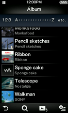 Pode seleccionar o formato de visualização de álbuns.