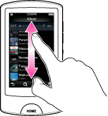 Přehrávač „WALKMAN“ lze ovládat pomocí dotykové obrazovky. Přehrávač „WALKMAN“ můžete ovládat klepnutím na ikonu, předmět, ovládací tlačítko a podobně. Můžete také rolovat seznam přetažením nahoru nebo dolů nebo prudkým klepnutím rychle procházet seznam miniatur (zmenšené snímky v seznamu).