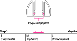 Στα ακουστικά τοποθετούνται προστατευτικά "μαξιλαράκια" μεγέθους M (μεσαίο) πριν από την αποστολή. Αν νιώθετε ότι τα προστατευτικά "μαξιλαράκια" μεγέθους M (μεσαίο) δεν ταιριάζουν στα αυτιά σας, αντικαταστήστε τα με τα προστατευτικά "μαξιλαράκια" μεγέθους S (μικρό) ή L (μεγάλο) (παρέχονται). Επιβεβαιώστε το μέγεθος των προστατευτικών "μαξιλαριών", ελέγχοντας το χρώμα στο εσωτερικό.