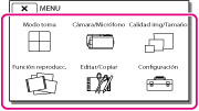La videocámara ofrece varios elementos de menú en cada una de las 6 categorías de menú.