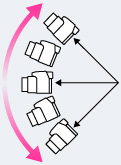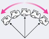 スイングパノラマ撮影のポイント一定の速度で小さな円を描くように動かし、モニターの矢印方向と平行に動かしてください。動いている被写体よりも、止まっている被写体のほうがパノラマ撮影には適しています。