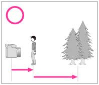 イラストのように被写体に近づき、被写体と背景の距離は大きくとってください。暗すぎるシーンや動きのある被写体を撮影した場合、またAE/AFロック後にカメラを動かした場合は、3D効果がはっきり出ない場合があります。また、暗い場所で撮影した場合、ノイズが強調されることがあります。