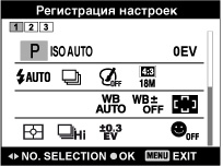 (Режим вызова из памяти) после завершения настроек съемки, предпочтение будет отдано зарегистрированным настройкам, и первоначальные настройки могут стать недействительными. Перед съемкой проверьте индикаторы на экране.