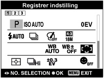 (Genkald hukommelse-tilstand) efter afslutning af optageindstillingerne, prioriteres de registrerede indstillinger, og de originale indstillinger bliver muligvis ugyldige. Kontroller indikatorerne på skærmen inden du optager.