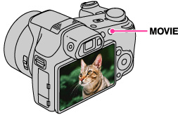 Apăsaţi butonul MOVIE (Film) pentru a începe înregistrarea unui film.