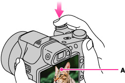 Numărul de imagini statice înregistrabile (A) apare pe ecranul LCD atunci când apăsaţi pe jumătate butonul declanşator.