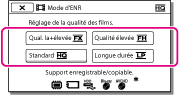Vous pouvez changer le mode d’enregistrement afin de sélectionner la qualité du film pendant que vous tournez un film au mode de qualité d’image haute définition (HD). Le temps d’enregistrement du support est modifié selon le mode d’enregistrement.