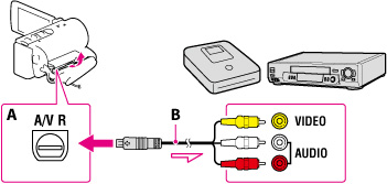 Connect your camcorder to the recording device with the A/V connecting cable.