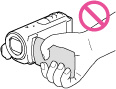 No sostenga la videocámara por las siguientes partes ni por las tapas de las tomas.