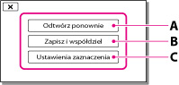 [Punkt Zaznaczenia]: Możliwość wyboru punktów w filmie lub na zdjęciu, które mają być wykorzystane przy Odtwarzaniu Zaznaczenia. Odtworzyć właściwy film i wybrać