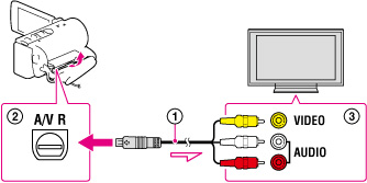 Om du ansluter videokameran till en TV med mer än en typ av kabel för utmatning av bilder prioriteras utmatning via HDMI till TV:n.